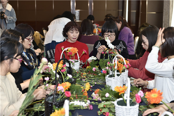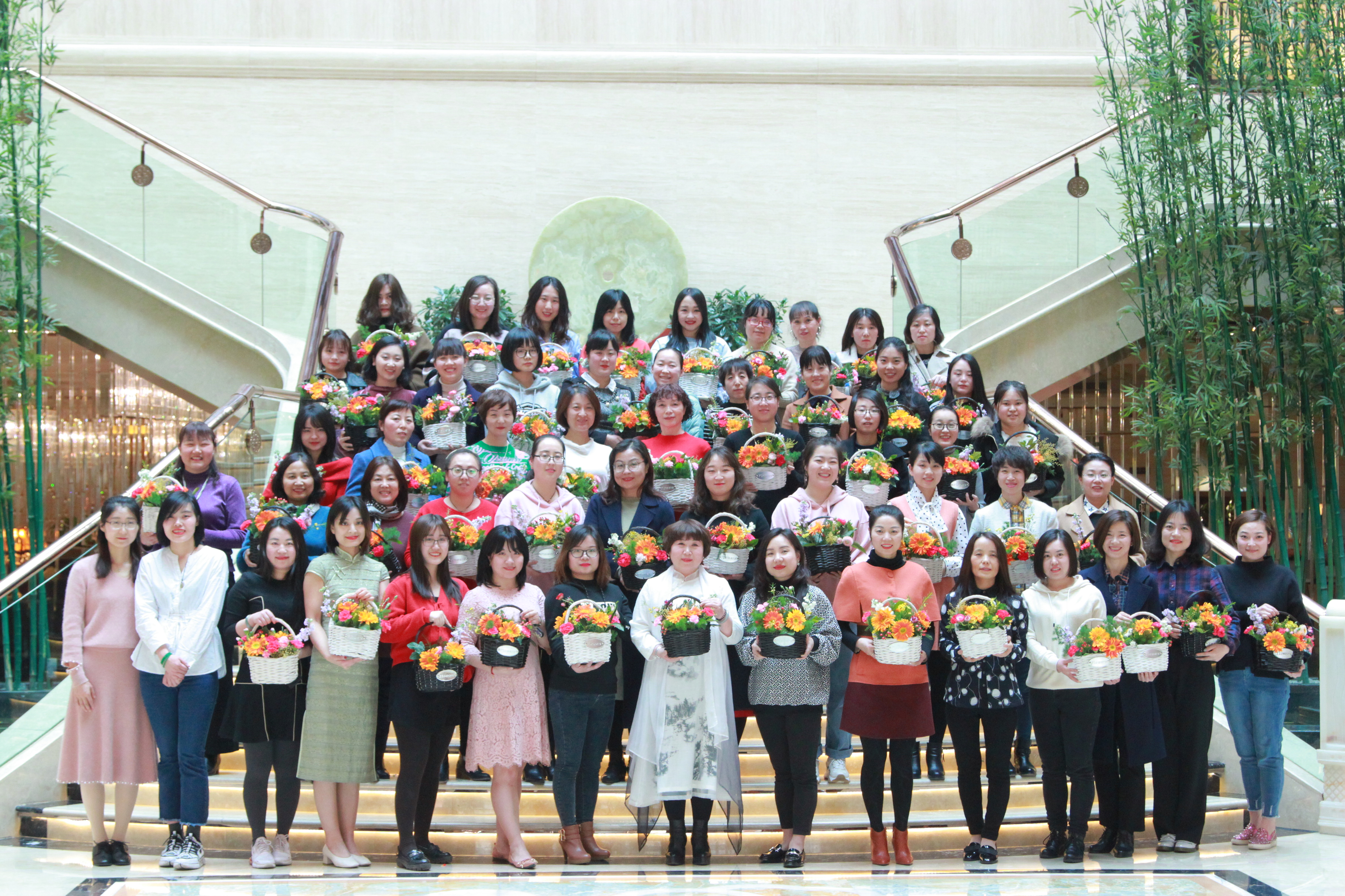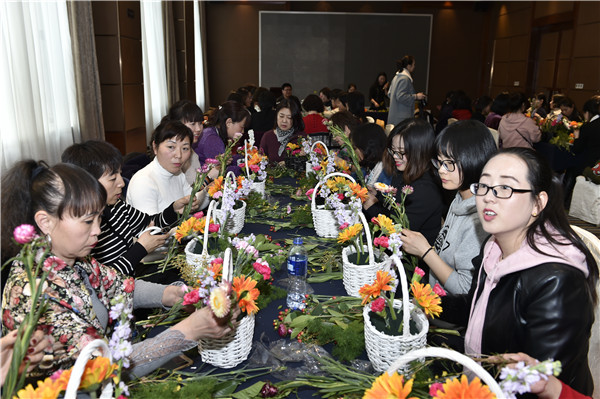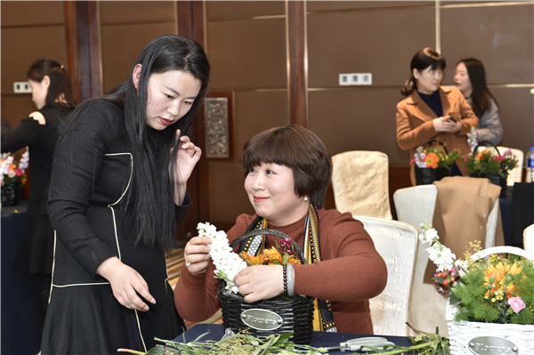 3月8日下午,公司工會在曲江國際飯店建國廳組織開展“建功十周年,巾幗綻芳華”插花送照片活動,特邀花藝老師給大家從選花、裁剪、顏色搭配、造型等方面講授插花技巧。