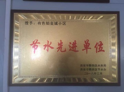 近期,在鄠邑區(qū)水務(wù)局舉辦的“中國水周”啟動儀式上,有色鉑金城小區(qū)被授予“節(jié)水先進單位”稱號。這一榮譽的獲得,是對有色鉑金城小區(qū)在重視水資源保護,積極倡導(dǎo)節(jié)約用水方面工作的一大肯定。